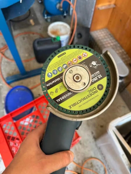 Compatible con la mayoría de amoladoras de 115 mm con eje de 22,23 mm (22,2 mm estándar europeo).